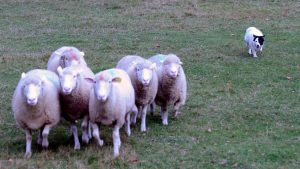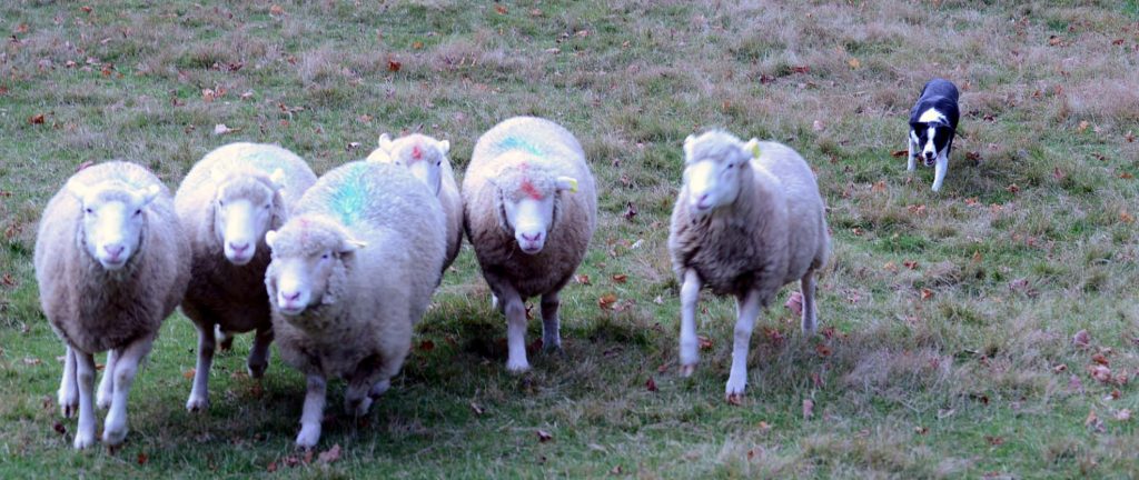 From top right Jack, Fia and Rae working sheep…